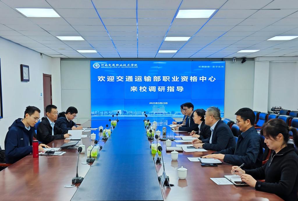 9月23日,交通运输部职业资格中心公路职业资格处处长王福恒一行3人来校调研交流,校长焦宏涛会见来访客人,副校长刘芝梅主持会议,科研外事处、公路学院、职业技能鉴定中心负责人参加座谈。