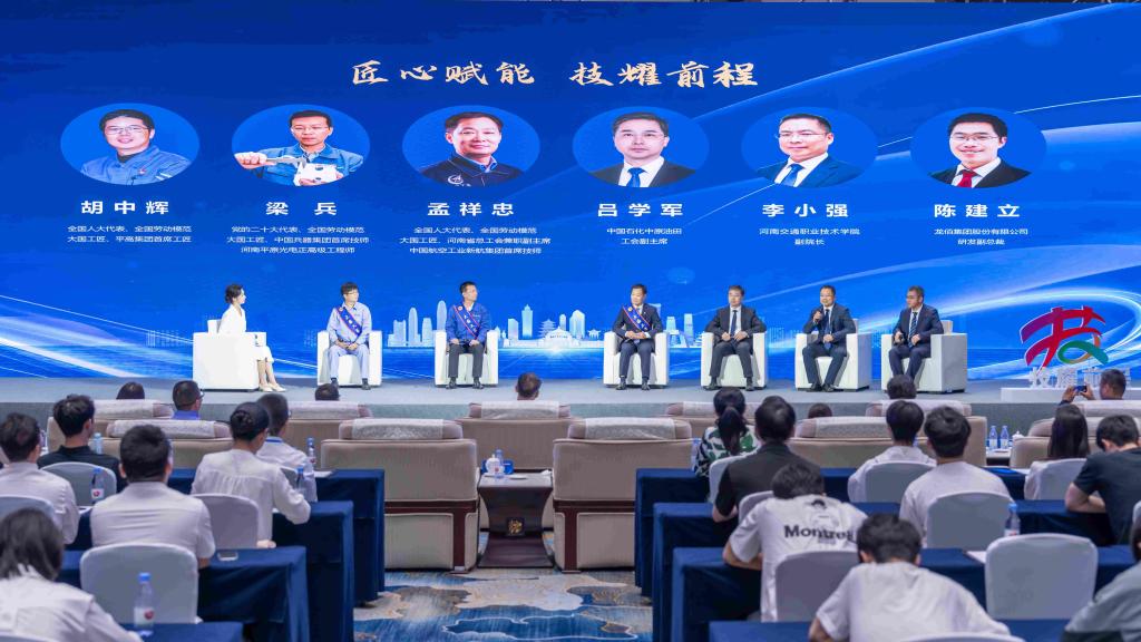 24日,在河南分论坛上,李小强与全国劳动模范、大国工匠孟祥忠、梁兵、胡中辉,中国石化中原油田工会副主席吕学军,龙佰集团研发副总裁陈建立等作为嘉宾代表围绕职工技能提升等相关主题进行了交流探讨。他表示,当前技术迭代加速,职业教育必须紧扣产业需求,核心任务是培育“能上手、能升级”的技能人才;通过“专业群对接产业链”“按需培养培训”等实践路径助力职工技能提升,同时将工匠精神融入教学全过程。他还对青年技术工人寄予期望:“希望你们在精益求精的同时,积极投身行业标准乃至国际标准的制定,从新时代的产业工人成长为明日的大国工匠!”