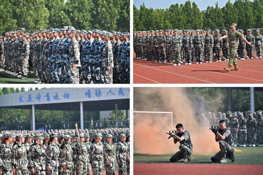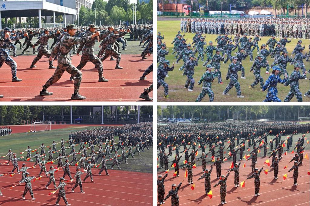 在军训成果汇报环节,院系方阵依次展示军训成果,他们队列整齐、精神抖擞。由100名新生组成的女子旗语方阵,手持双色旗,以旗为语,用独特的符号传递忠诚与信念;突然,一群武装“持械暴恐分子”冲入操场警戒区域,由军训学生组成的“特战队”方阵迅猛出击,“防暴小组”利用防暴盾牌迅速组成防御阵形,勇敢面对持械“暴恐分子”,穿插交替掩护,与“匪徒”近身格斗,成功制服所有“匪徒”,充分展示了“特战队”方阵的机智和果敢;军体拳表演方阵展示了冲拳、侧踢,拳脚生风;挡臂、掏腿,动若雷霆,这锤炼的不仅是体魄,更是逢敌亮剑的胆气,是保家卫国的赤诚;军士生用整齐划一、刚劲有力的匕首操,生动诠释了军训的深刻内涵与青春的无限可能,尽显新时代大学生的英姿与气魄,赢得了大家阵阵掌声。