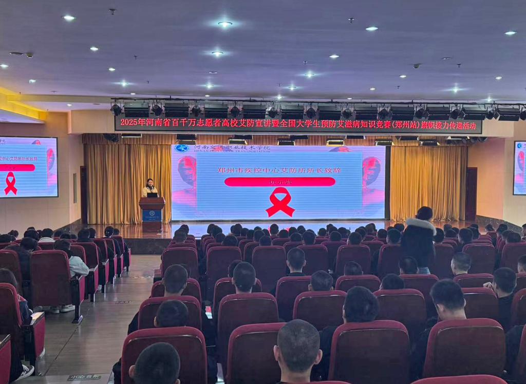 近日,郑州市疾控中心牵头的河南省百千万志愿者高校艾防宣传(郑州站)暨全国大学生预防艾滋病知识竞赛(河南赛区)活动在郑州高校间展开。作为郑州市8所参与高校之一,学校以旗帜传递为纽带,串联起多维度、沉浸式防艾宣传活动,切实将防艾知识普及与责任传递落到实处。