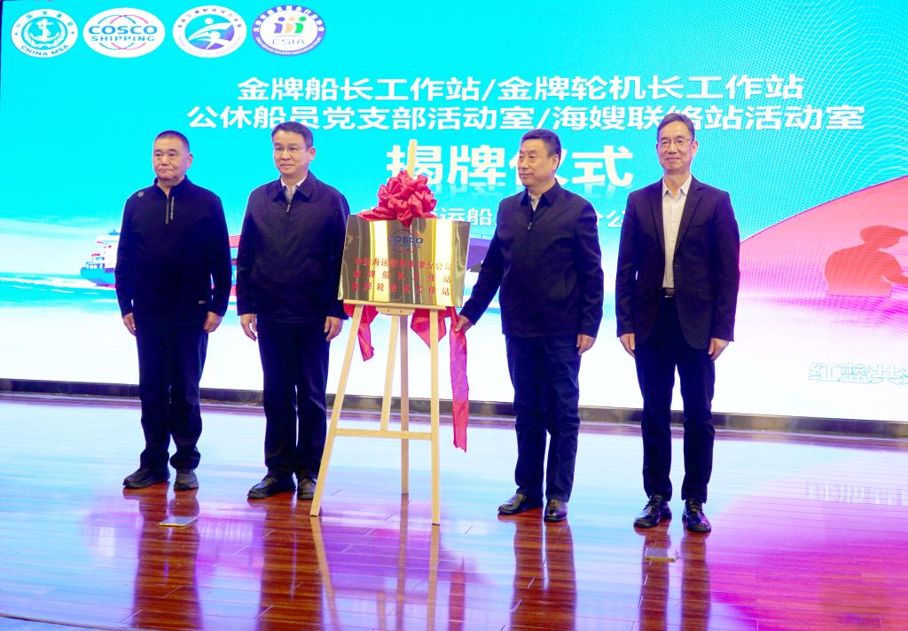 黄海波和焦宏涛共同为“中远海运船员天津分公司金牌船长工作站/金牌轮机长工作站”揭牌。