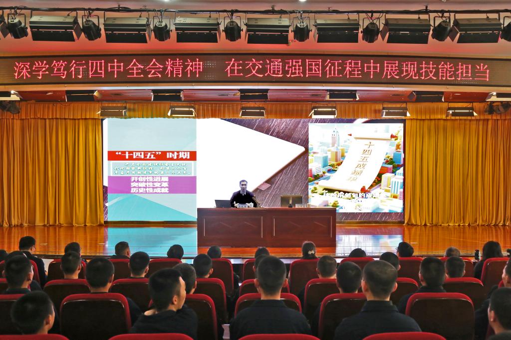 12月17日,校长徐红玉在郑东校区图书馆报告厅以《深学笃行党的二十届四中全会精神,在交通强国征程中展现技能担当》为题,为公路学院师生讲授学习贯彻党的二十届四中全会精神专题思政课。公路学院400余名师生代表参加。