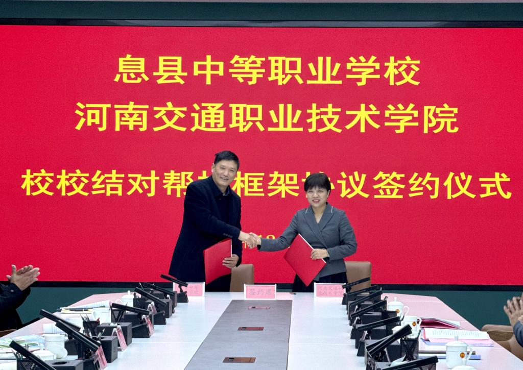 焦宏涛指出,校地结对帮扶是教育领域服务国家战略的重要实践,通过高校与地方政府结对协同,推动职业教育改革、乡村振兴和地方产业融合发展。他表示,河南交院将立足自身办学优势,聚焦息县职业教育发展需求,在“三二分段制”联合办学、双师队伍培养、大赛能力提升、实训资源共享和技能人才培养等方面提供精准帮扶,提升息县中等职业学校办学能力,不断拓展智力帮扶、产业帮扶、科技帮扶、人才帮扶、消费帮扶的深度和广度,助力息县经济高质量发展。