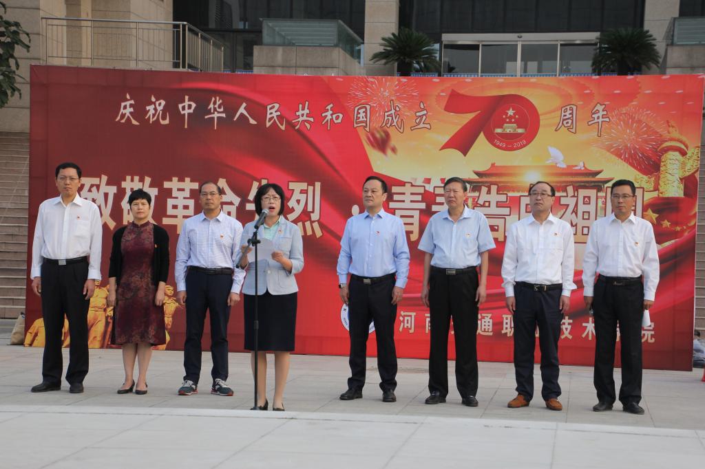 9月30日清晨,学院在郑东校区广场上举行“致敬革命先烈·青春告白祖国”庆祝新中国成立70周年升旗仪式。党委书记曹焱、院长李强等领导与教师代表及全体在校生参加了此次升旗仪式,升旗仪式由工会主席张瑞春主持。