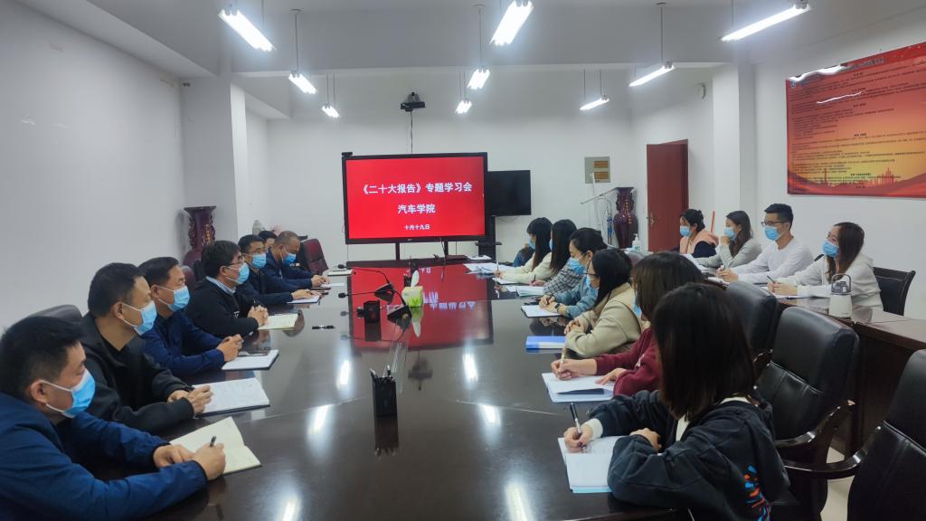 汽车学院党总支:汽车学院第一时间召开专题学习会和学生座谈会,组织教职工认真学习党的二十大报告,交流学习心得,推动党的二十大精神进课堂、进教材、进头脑。学生纷纷表示,作为新时代青年要听党话、跟党走,努力锤炼本领,提升政治修养和文化水平,强化专业技能,积极投身中华民族伟大复兴的奋斗之路。汽车学院还在第一时间开展多种形式的宣传,微信公众号及时推出《一图速览二十大报告》《聚焦,二十大!| 汽车学院师生热议党的二十大报告》等推文,向广大师生宣传大会盛况、分享优秀学习感言,努力营造学习党的二十大精神的浓厚氛围。