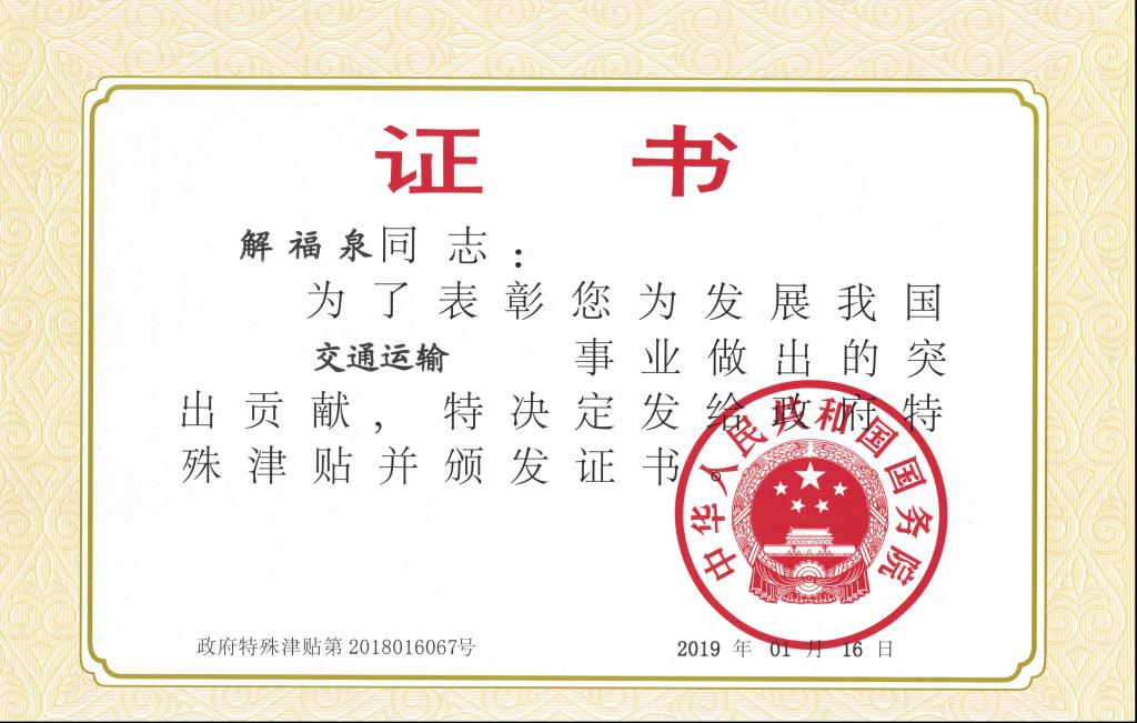 国务院特殊津贴制度是党中央、国务院关心爱护广大专业技术人才、高技能人才,加强高层次、高技能人才队伍建设的一项重大举措。对于进一步营造“尊重劳动、尊重知识、尊重人才、尊重创造”的良好社会环境,加强高层次专业技术人才队伍建设发挥了重要作用。近年来,我校不断加强高层次人才队伍建设,深入实施专业领军人才培养工程,不断优化人才成长环境,高层次人才总量和层次明显提高。这次解福泉教授成功入选享受国务院政府特殊津贴人员名单,充分表明了他在工作岗位上的突出业绩和重大贡献,是对他求真务实、爱岗敬业、无私奉献、勇于创新精神的充分肯定,也是我校高层次人才队伍建设成果的又一体现。