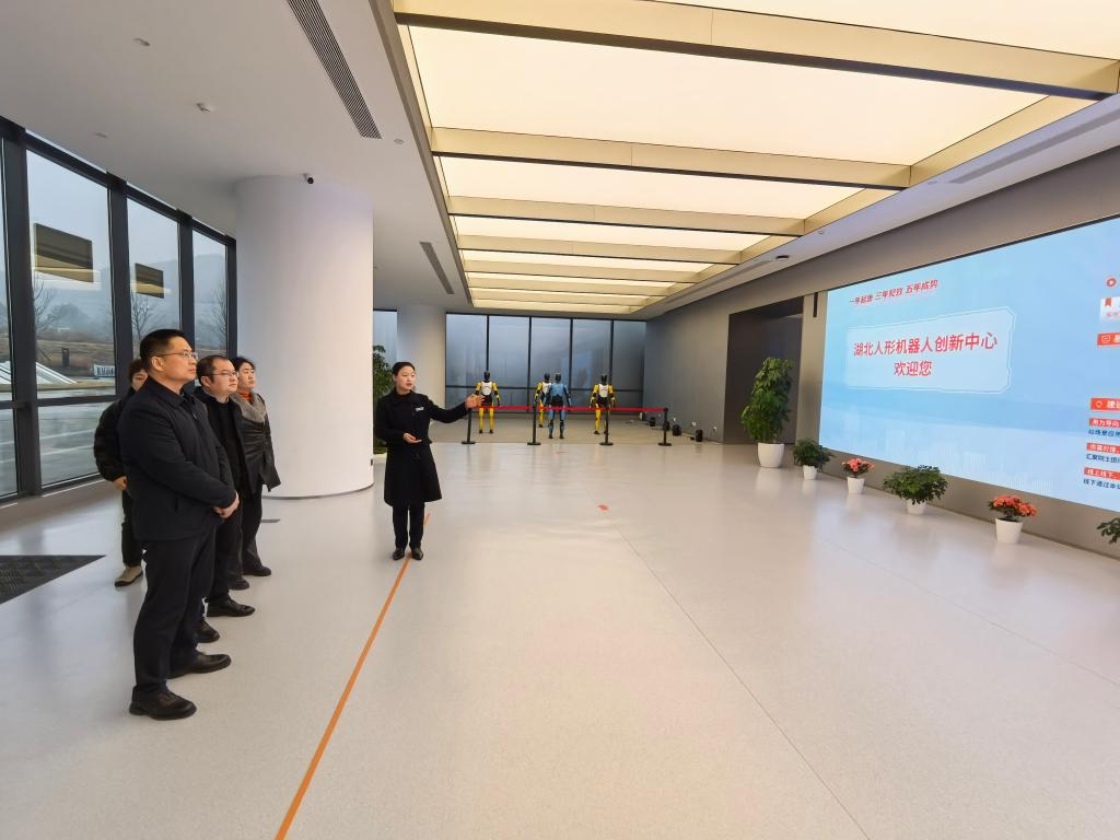 李小强一行实地考察了企业人形机器人创新中心,现场观摩人形机器人在各类场景中的应用展示,深入了解机器人动作训练的核心流程与技术要点,直观感受企业在人工智能、数字技术领域的发展成果和技术布局。