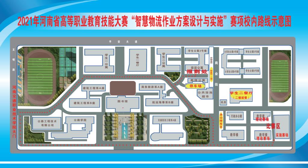 根据河南省教育厅《关于举办2021年河南省高等职业教育技能大赛的通知》(教办职成〔2021〕72号)文件和《关于公布2021年河南省高等职业教育技能大赛拟设赛项及承办学校的公告》的要求,2021年河南省职业院校技能大赛高职组“智慧物流作业方案设计与实施”赛项(GZ-2021050)由河南交通职业技术学院承办。经报省教育厅同意,赛项定于2021年12月21日报到,22日-25日比赛。现就赛项报到事宜通知如下: