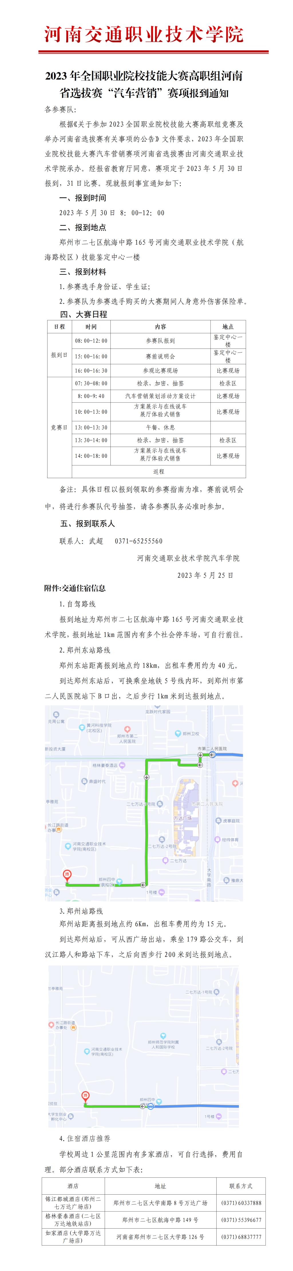 2023年全国职业院校技能大赛高职组河南省选拔赛“汽车营销”赛项报到通知