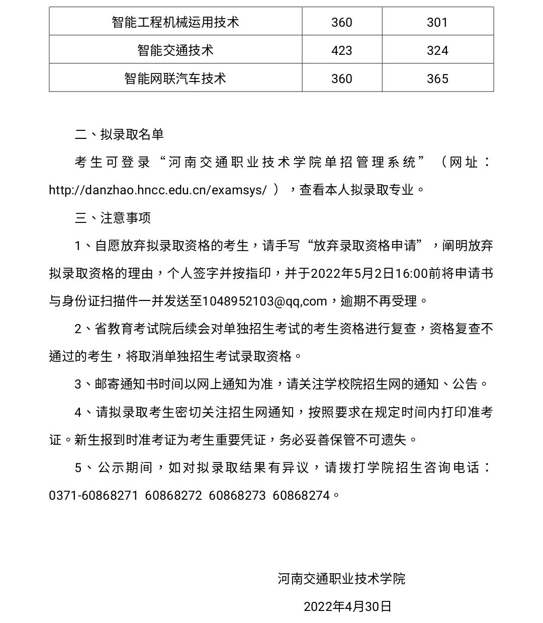 2022年单独招生拟录取结果公示