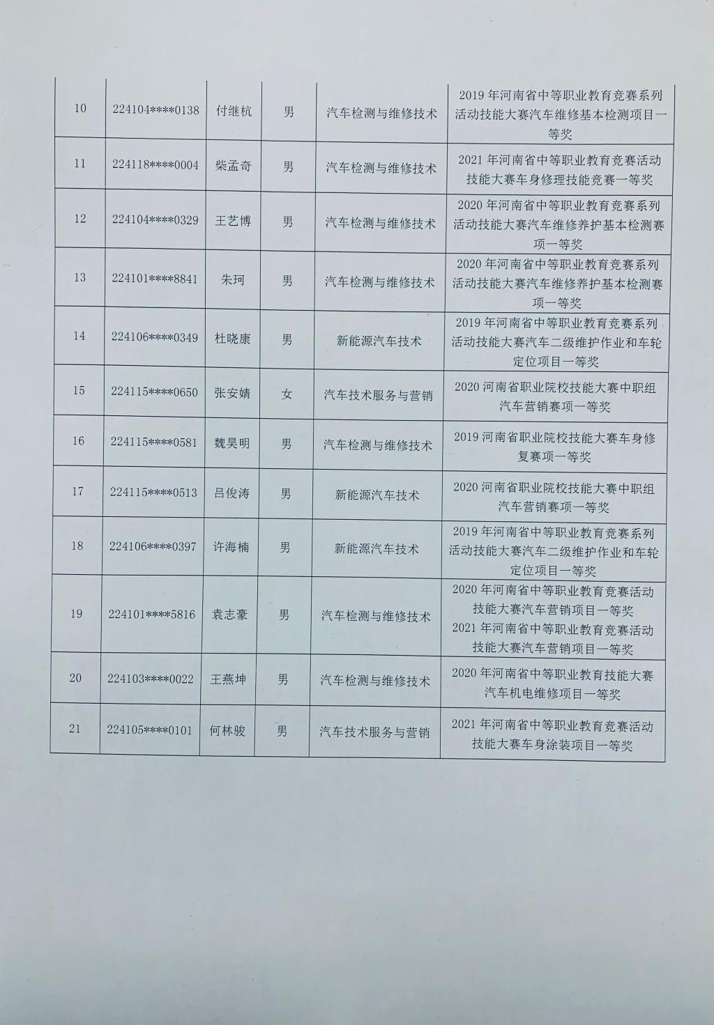 2022年单独招生考试免试考生名单公示
