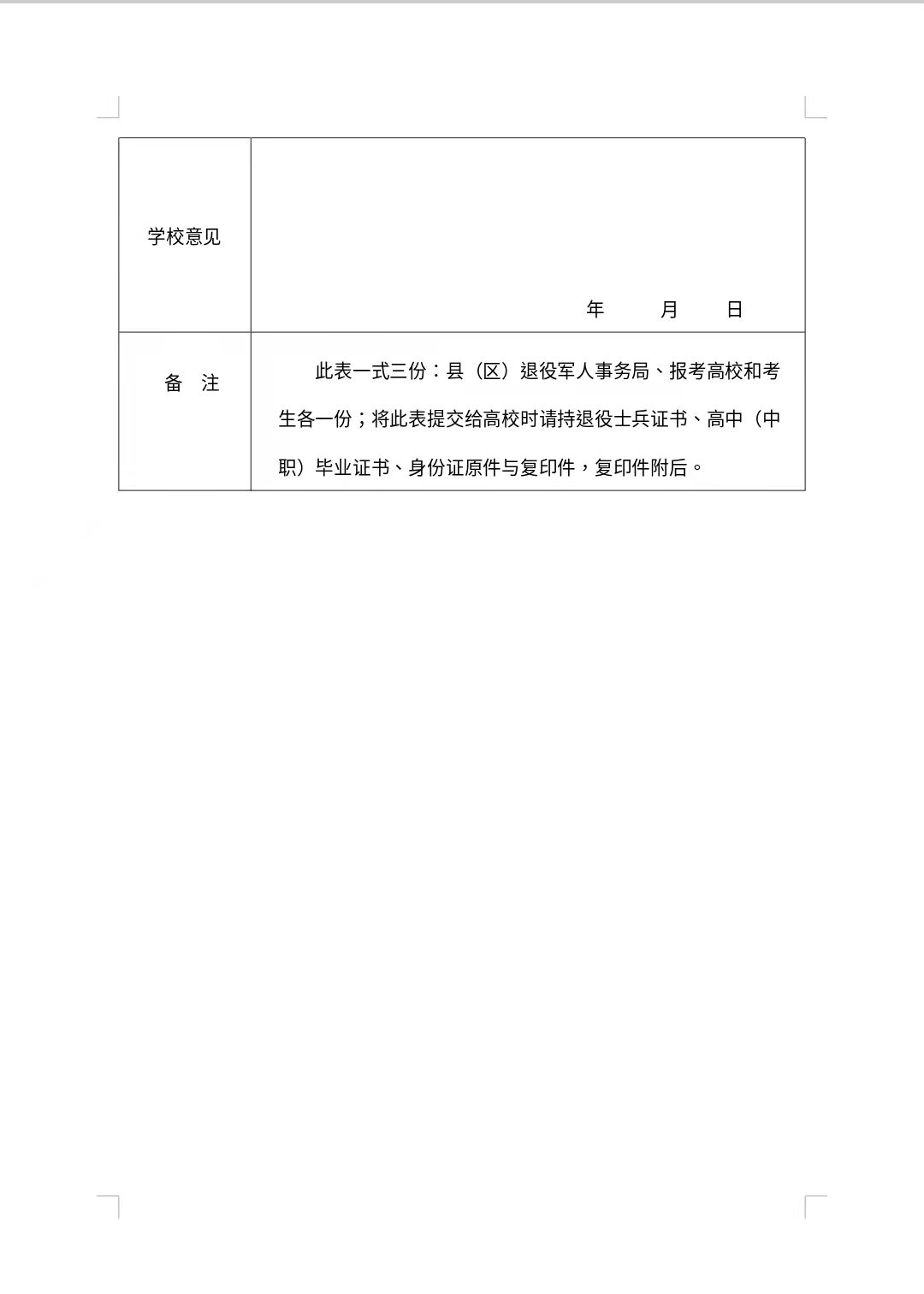 2022年单独招生招收退役士兵申请表