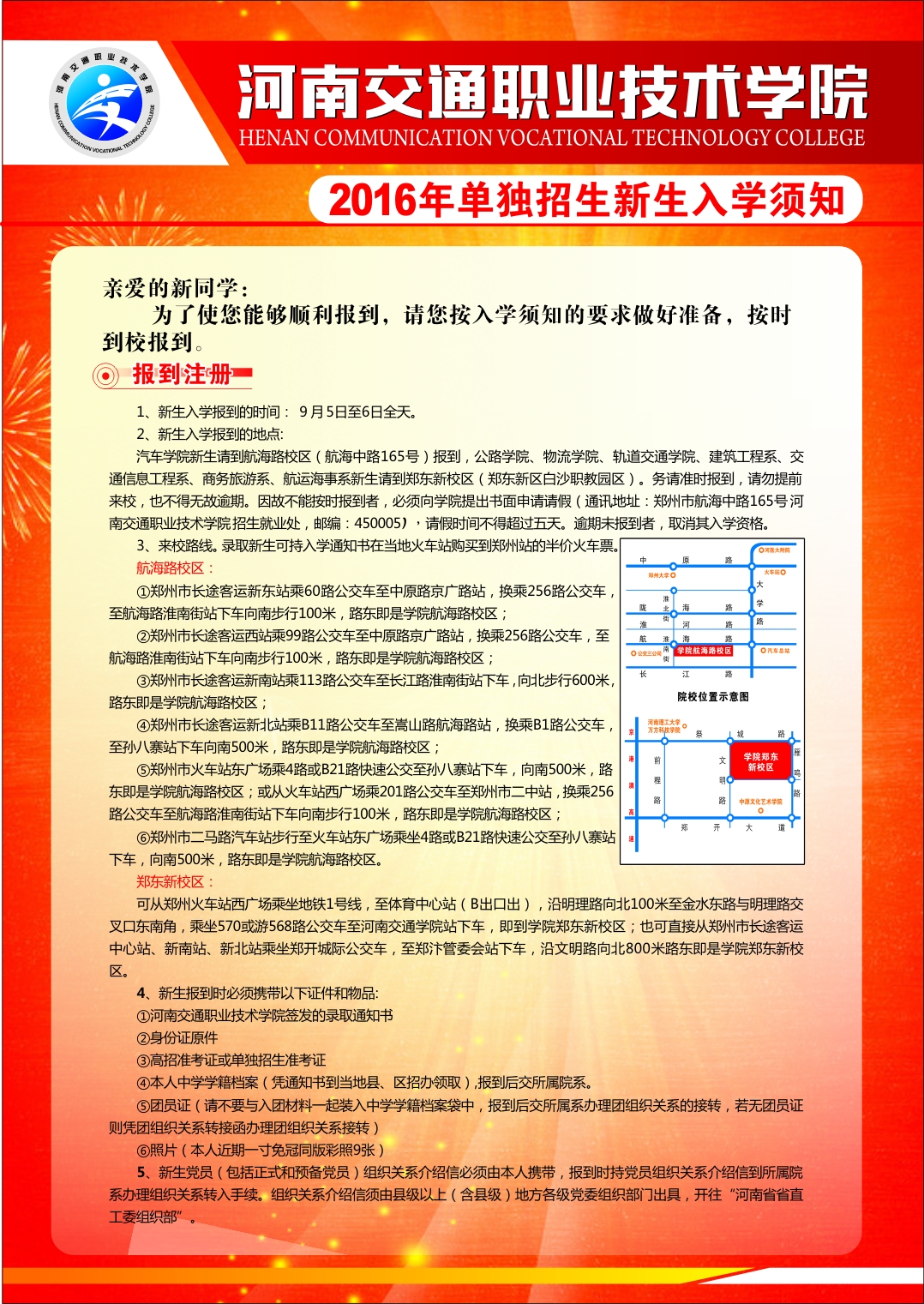 2016年单独招生新生入学须知