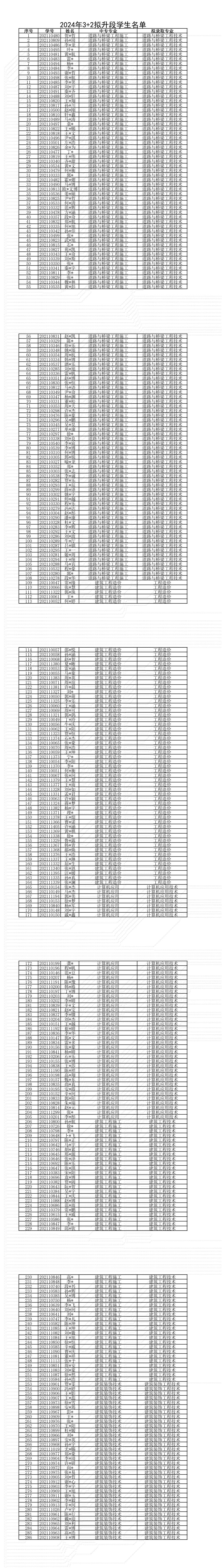 河南交通职业技术学院2024年3+2升段拟录取名单公示