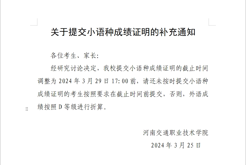 关于提交小语种成绩证明的补充通知