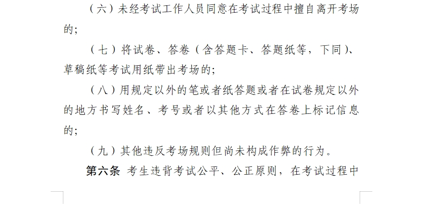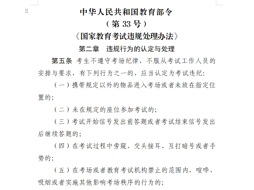 《国家教育考试违规处理办法》第二章 违规行为的认定与处理