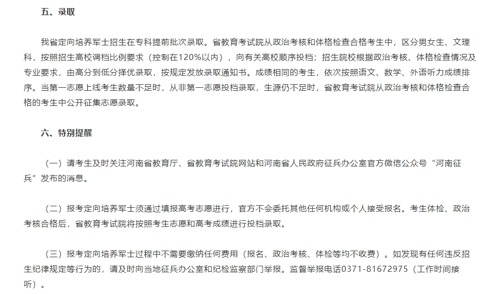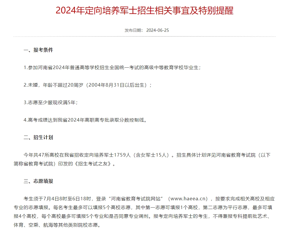 2024年定向培养军士招生相关事宜及特别提醒