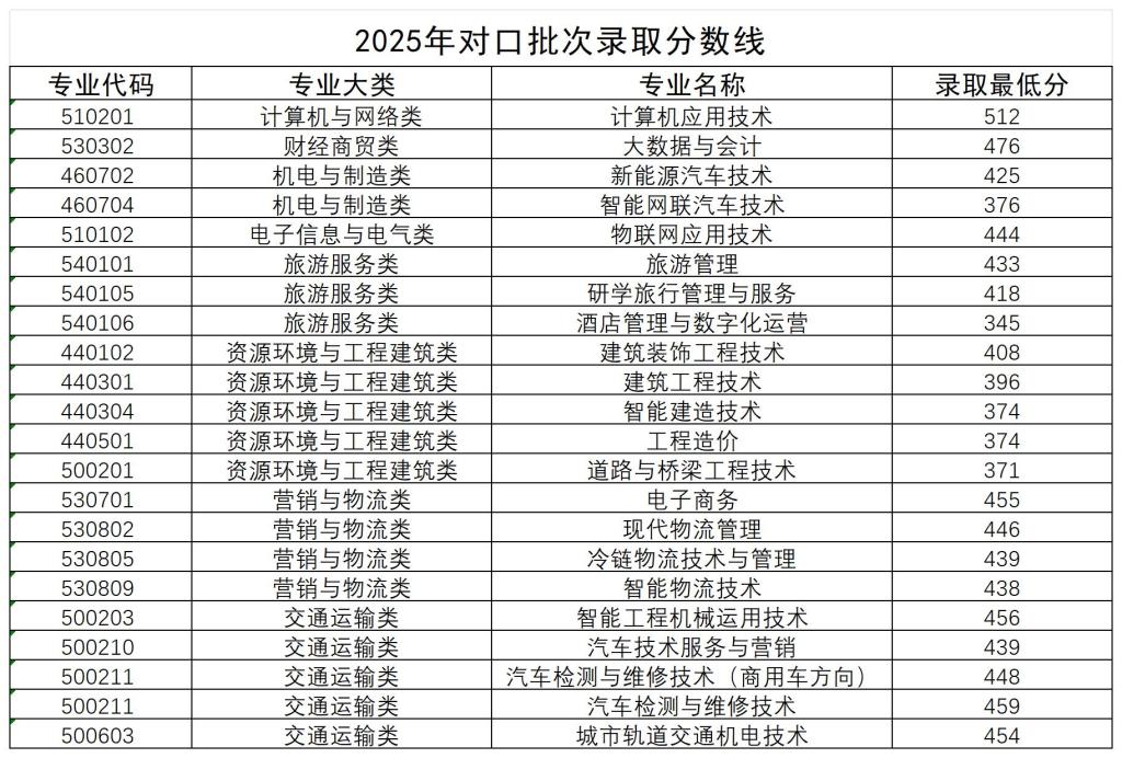 2025年对口批次录取分数线