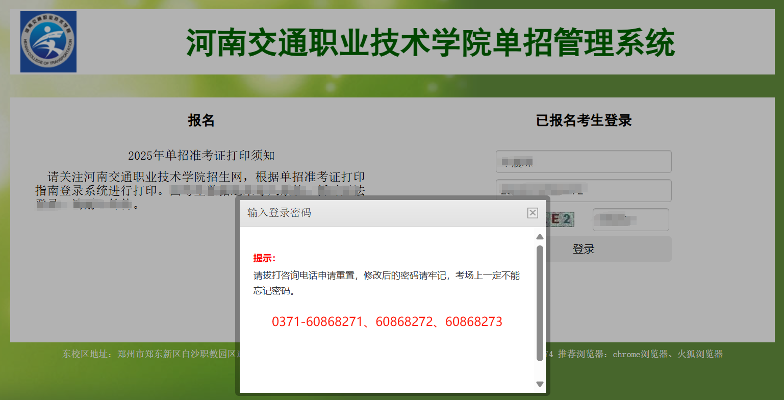 3)如忘记密码,请拨打0371-60868271、60868282、60868273重置密码。如图4所示。