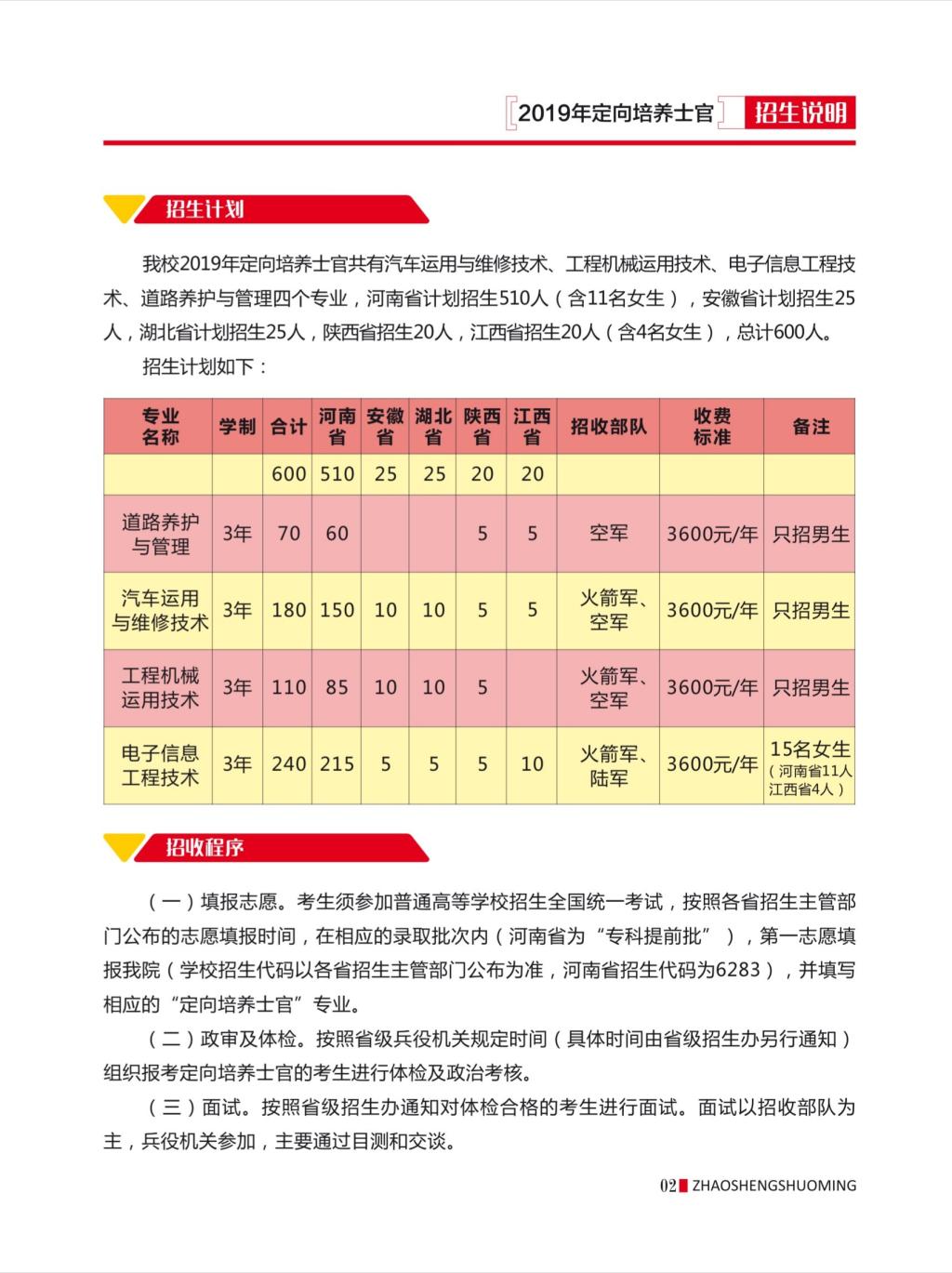 河南交通职业技术学院2019年定向培养士官计划表